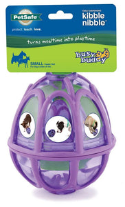 View full detailsBusy Buddy Dog Toy Kibble Nibble Feeder Ball Purple SM
